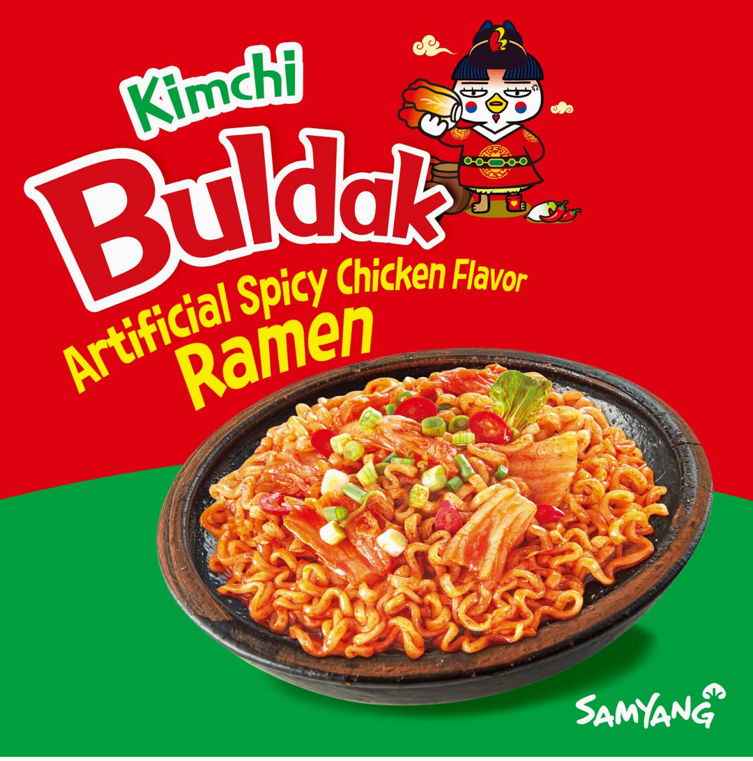 SAMYANG BULDAK Kimchi Ramen. This luxurious dish boasts a tantalizing blend of artificial spicy chicken flavor and traditional kimchi, creating a unique and mouthwatering experience. Satisfy your cravings for heat and depth with every bite.kimchi